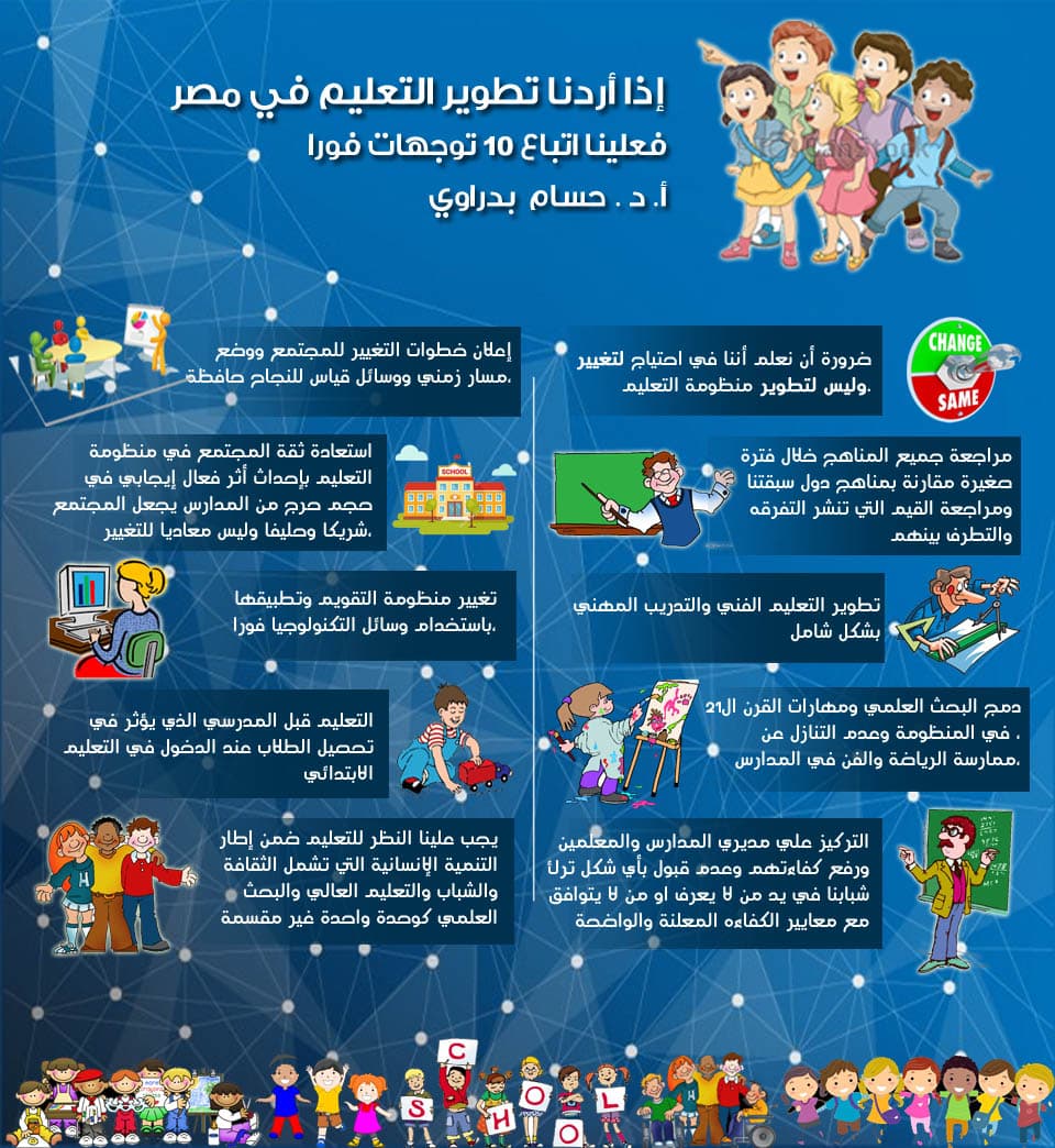 إذا أردنا تطوير التعليم في مصر فعلينا اتباع 10 توجهات،