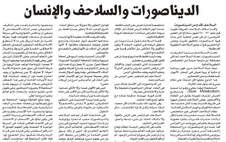 في ختام هذا المقال، لم تعد السلاحف والديناصورات مجرد استعارة بيولوجية، بل إنذارًا تربويًا شديد الوضوح في زمن الذكاء الاصطناعي. فالعالم الذي شكّل التعليم التقليدي قد انتهى أو يكاد، وسوق العمل القادم لن يكافئ من يحفظ أكثر، بل من يفهم أسرع، ويتعلّم أعمق، ويعيد تشكيل مهاراته كلما تغيّرت الأدوات. كثير من الوظائف التي نُعدّ لها أبناءنا اليوم ستختفي، أو تتحوّل جذريًا، لتحلّ محلها أدوار جديدة تقوم على التفكير التحليلي، والإبداع، وحسن استخدام الآلة لا منافستها. وهنا يتحدد الفارق بين مصير الديناصورات ومصير السلاحف: الأولى راهنت على قوتها وحجمها، والثانية راهنت على التكيّف. التعليم في عصر الذكاء الاصطناعي لا ينبغي أن يُنافس الخوارزمية في سرعة الحساب أو استدعاء المعلومات، فهذا معركة خاسرة، بل عليه أن يركّز على ما لا تستطيع الآلة امتلاكه: التفكير النقدي، الحكم الأخلاقي، القدرة على الربط، والخيال الخلّاق. نحن بحاجة إلى تعليم يُدرّب الشباب على التعلّم المستمر، وعلى الانتقال المرن بين المهن، وعلى فهم التكنولوجيا بوصفها شريكًا لا خصمًا. المرونة هنا لم تعد خيارًا تربويًا، بل شرطًا للبقاء في سوق عمل متحوّل، قاسٍ أحيانًا، لا يعترف إلا بمن يستطيع أن يعيد اختراع نفسه دون أن يفقد إنسانيته. فإذا أردنا لأجيالنا القادمة أن تعبر هذا المنعطف التاريخي بسلام، فعلينا أن نربّيهم بقدرة السلحفاة لا بجبروت الديناصور: وعي طويل المدى، تعليم متجدّد، واستعداد دائم لعالم يتغيّر أسرع مما نظن.