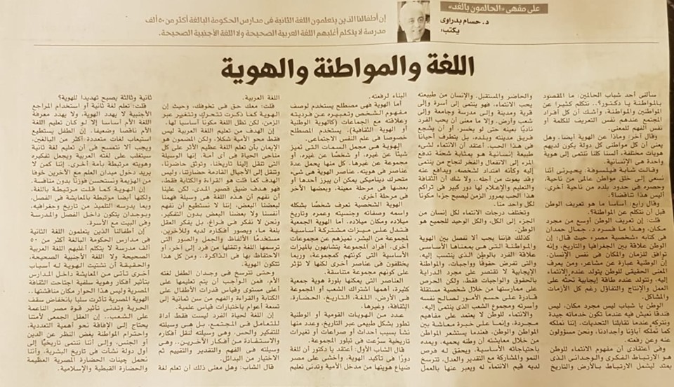 د بدراوي يكتب في المصري اليوم: اللغة والمواطنة والهوية