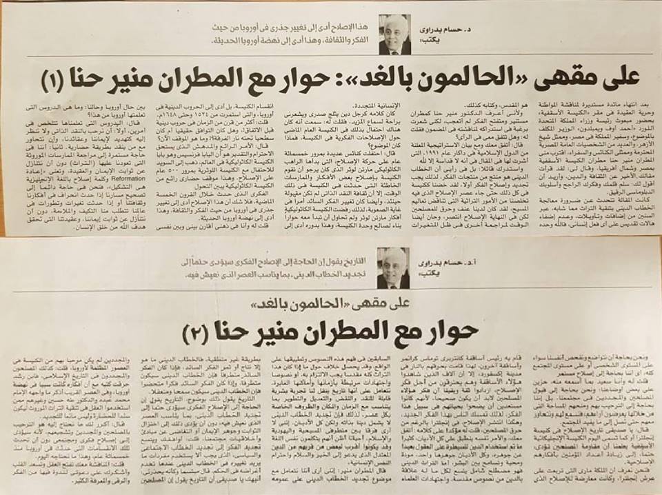 د. حسام بدراوى يكتب: على مقهى «الحالمون بالغد»: حوار مع المطران منير حنا (1)
