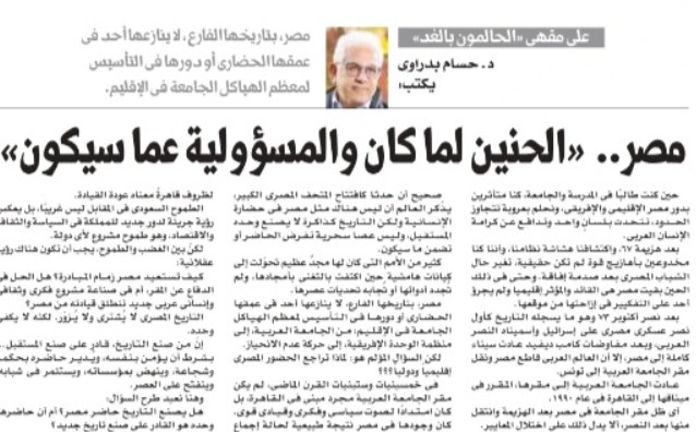 مصر.. «الحنين لما كان والمسؤولية عما سيكون» بقلم حسام بدراوي