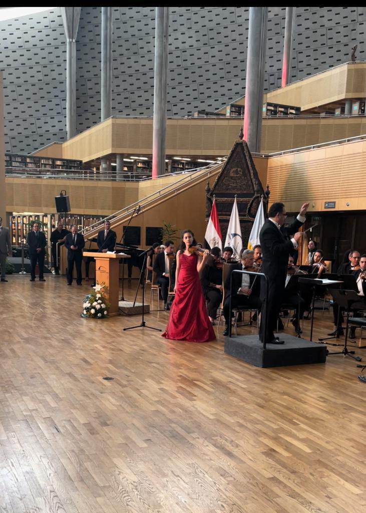 The Bibliotheca Alexandrina concert was performed by Mr. Ramzy Bassi, the soprano Amira Selim, the soprano Farah Al Dibani, the Priest Maryam Abu Zahra, and the creative library choir led by Shadi Abdel Salam.
