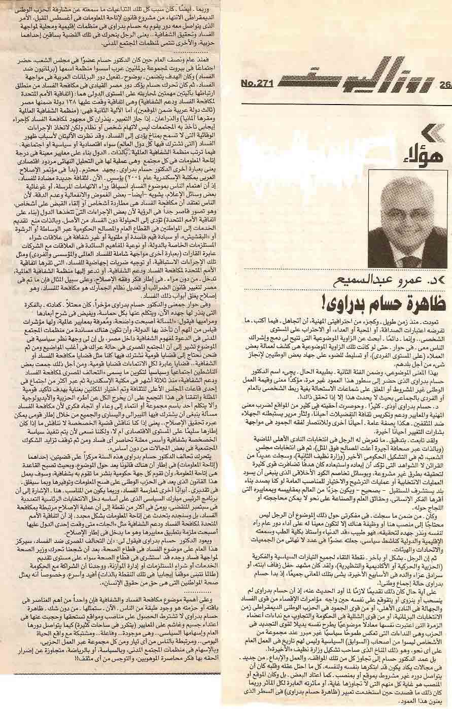 ظاهرة حسام بدراوي.. روزاليوسف بقلم د عمرو عبدالسميع