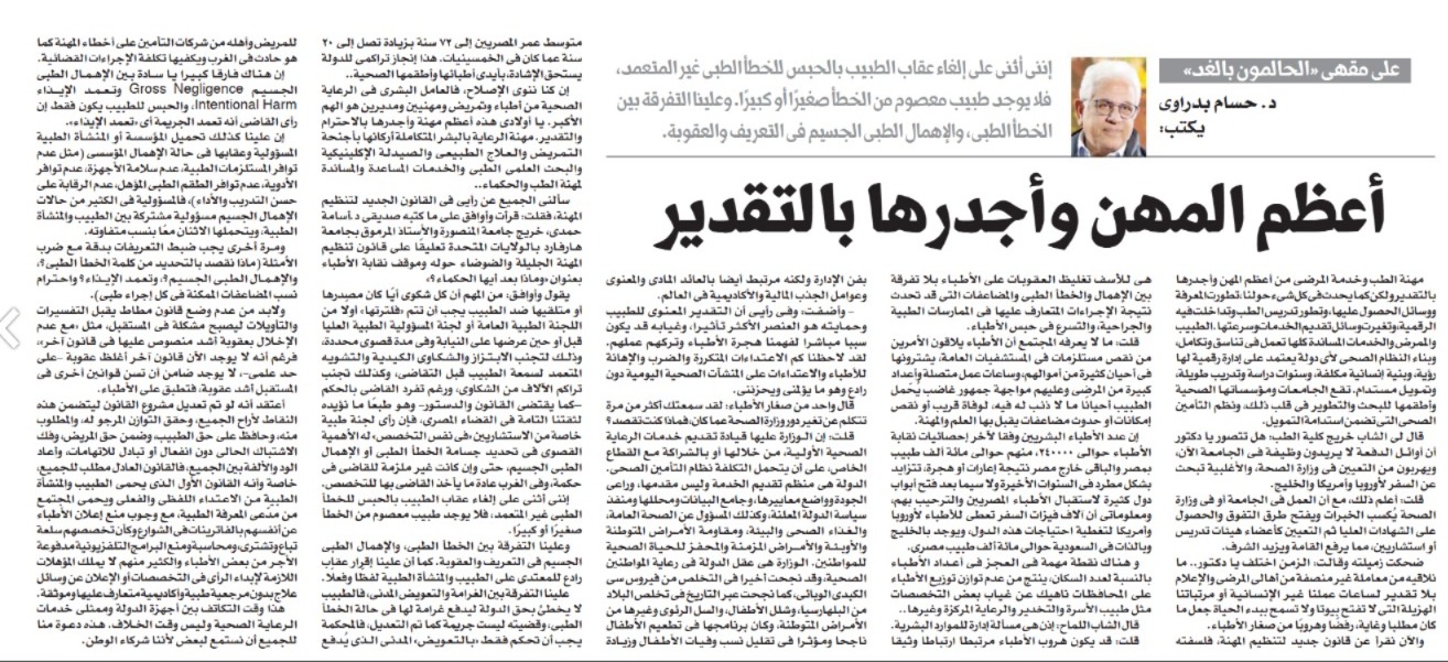 The greatest and most appreciated professions Hossam Badrawi The profession of medicine and patient service is one of the greatest…