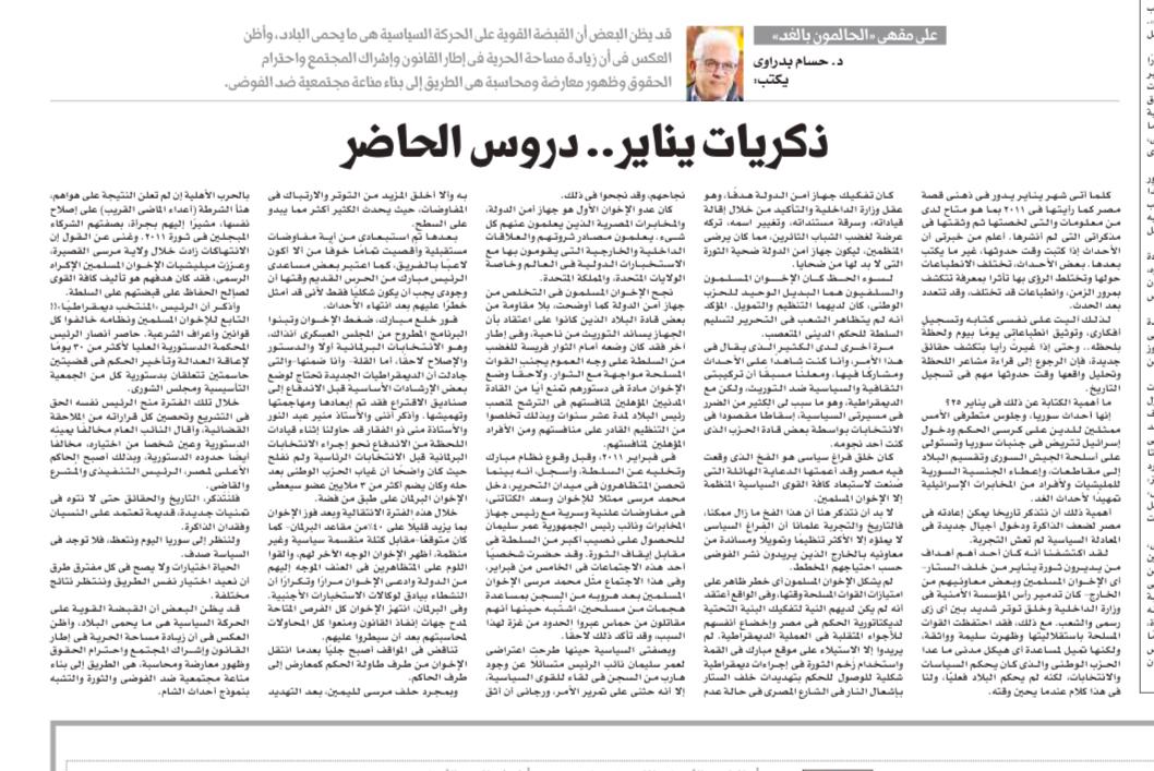 January Memories… Lessons for the Present By Hossam Badrawi