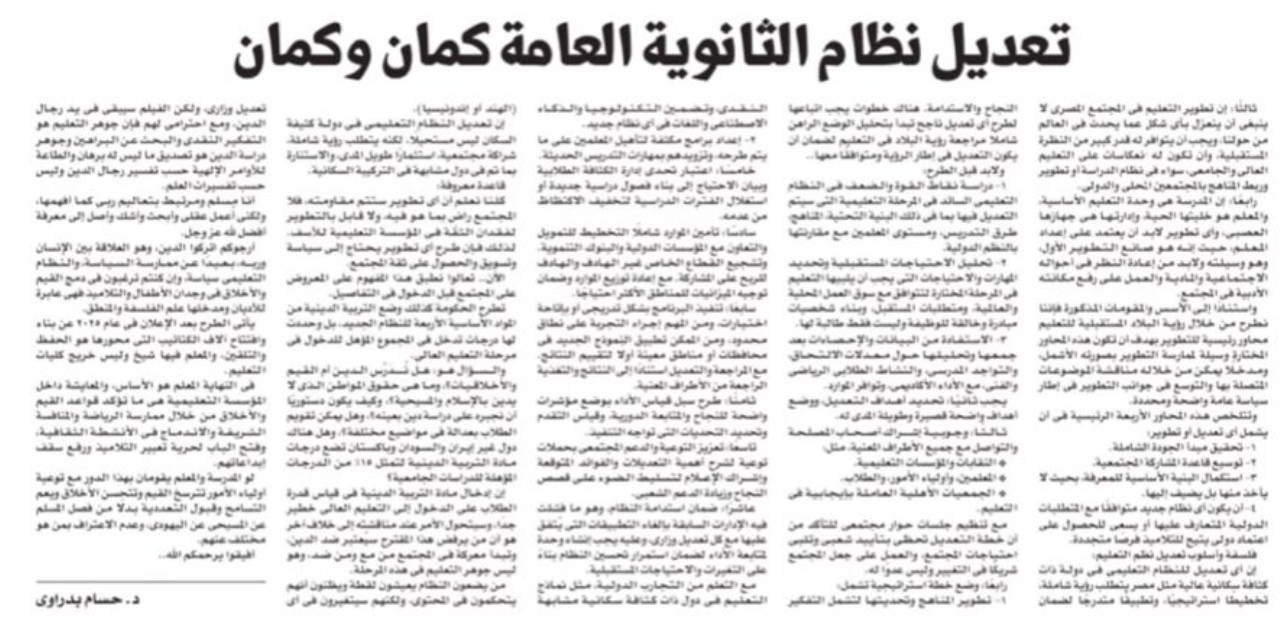 Reforming the General Secondary Education System By Hossam Badrawi