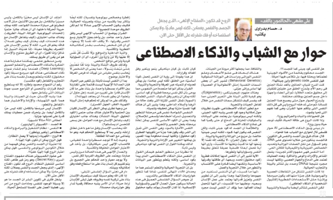 A Dialogue with Youth and Artificial Intelligence By: Hossam Badrawi Does the Soul Have a Genetic Code Like the Body?…