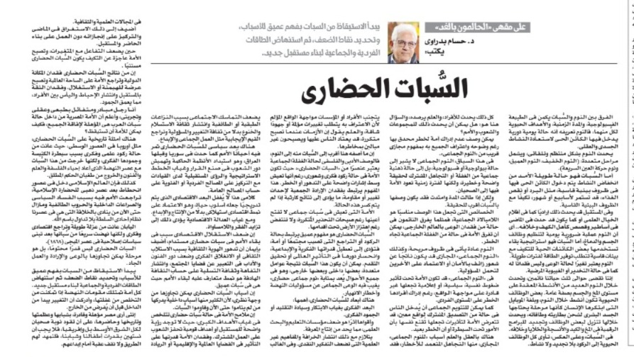 Civilizational hibernation is a profound concept linked to the state of stagnation and decline that afflicts a society or nation, leading to the disruption of its intellectual and creative capabilities, and the decline of its role in global influence or achieving progress. This hibernation can be the result of multiple factors, some internal and some external, and in all cases it is considered a “collective civilizational sleep” in which collective awareness of the responsibilities of renaissance and the dangers of collapse is absent.
