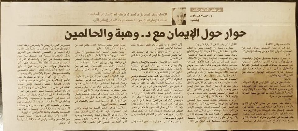 Have you read Dr. Murad Wahba’s article about the upcoming religious discourse and his description of faith?