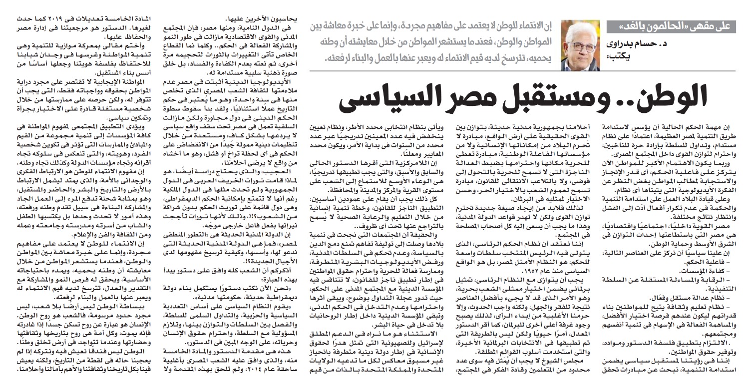 The homeland and Egypt’s political future