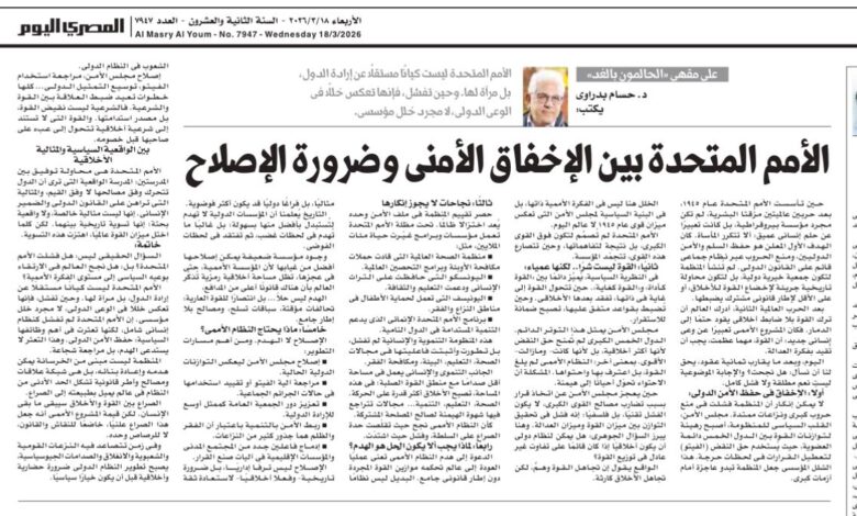 Hossam Badrawi Writes for Al-Masry Al-Youm: The United Nations Between Security Failure and the Necessity of Reform