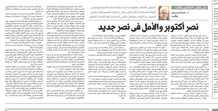 The Egyptian people revived their army after the defeat, and the Egyptian army revived its people with its victory in October.