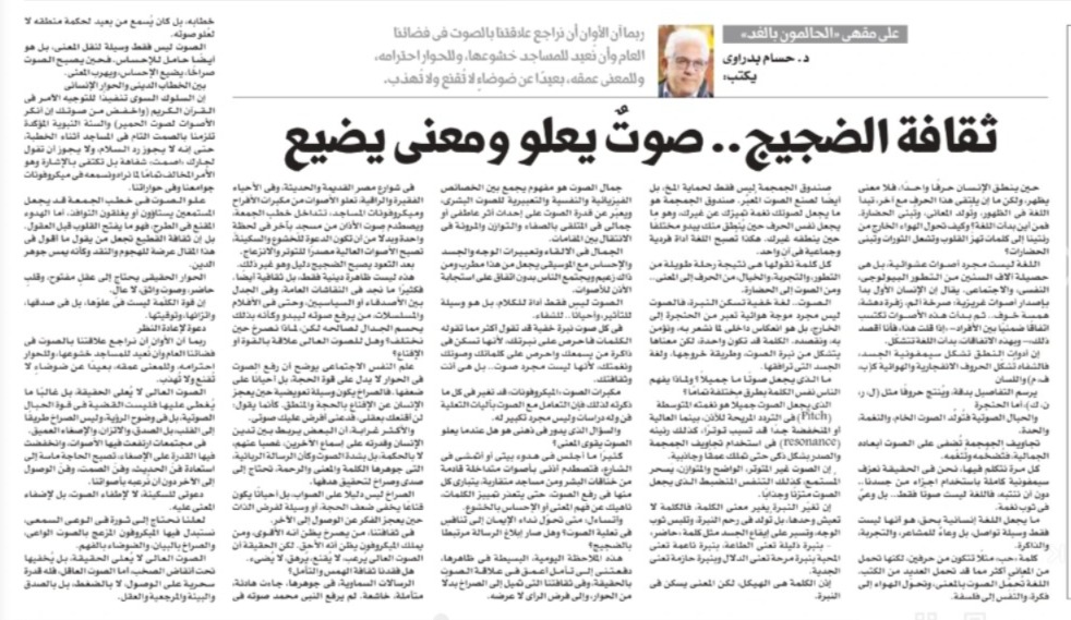 Often, I sit quietly at home or walk in the street, and my ears are struck by overlapping sounds—human quarrels or nearby mosques competing to raise their volume, until the words become indistinguishable, let alone meaningful or reverent.