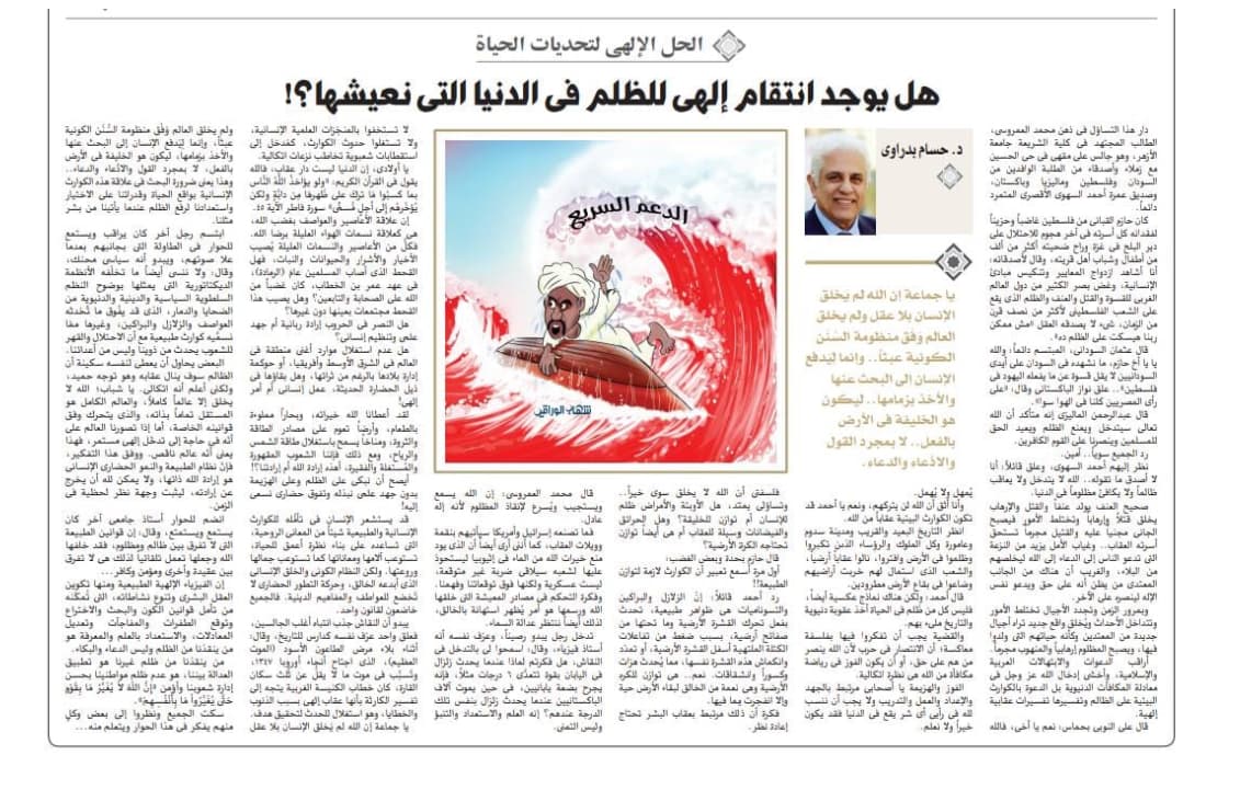 I watch Arab prayers and pleas for divine revenge, and I fear involving God Almighty in transactional earthly rewards or interpreting environmental disasters as divine punishment for the oppressor.